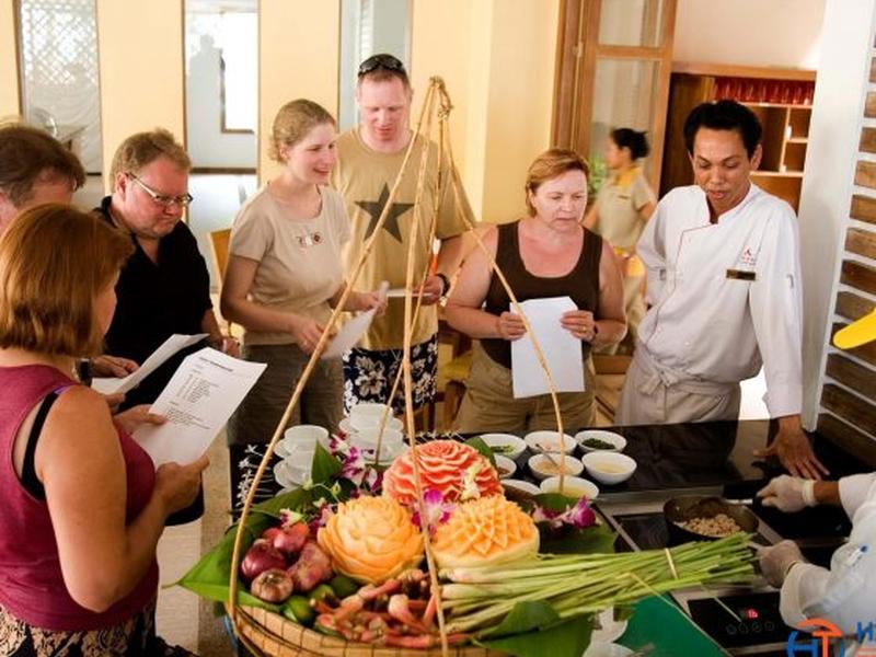 11:00: Enjoy a welcome drink and take a rest at our restaurant, then join the cooking class. Our chef will teach you how to cook some local food. After the lesson, enjoy what you have cooked.